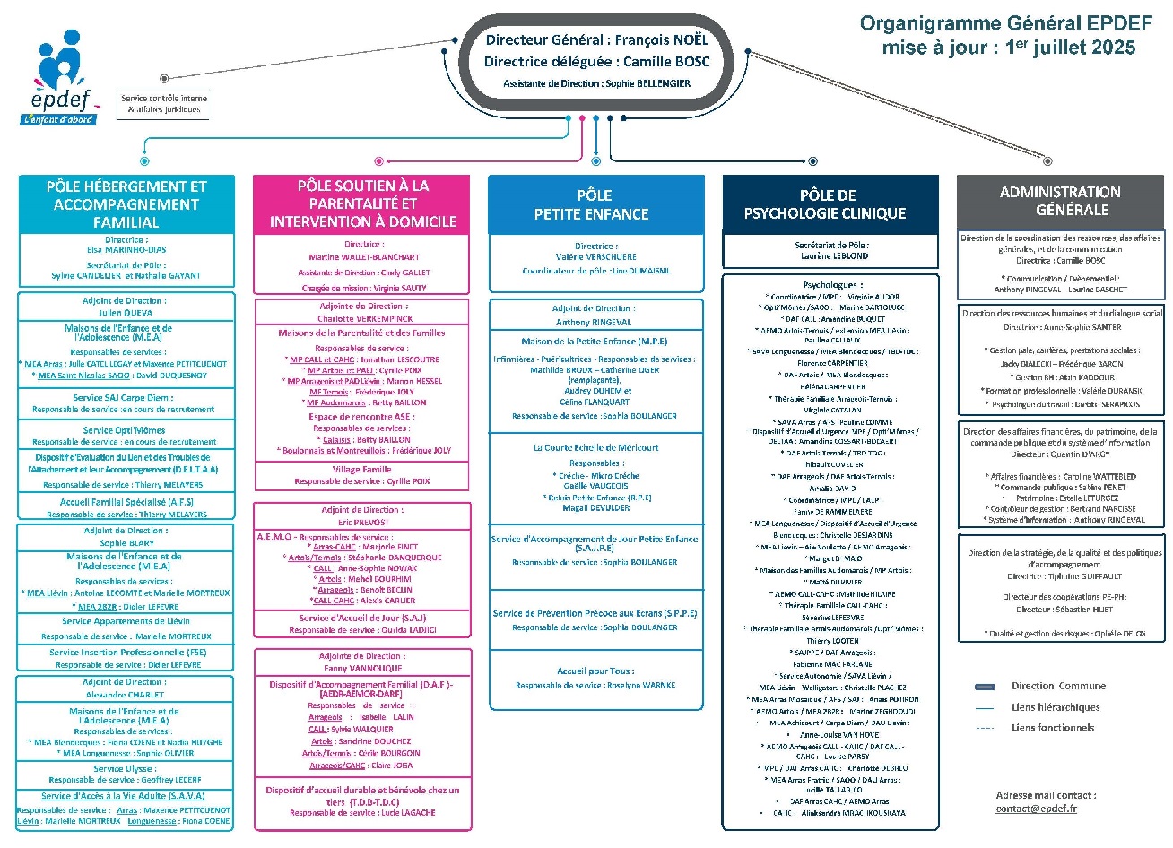 Découvrez la présentation des services via l'organigramme ci dessous en téléchargement au format "pdf" : ORGANIGRAMME EPDEF