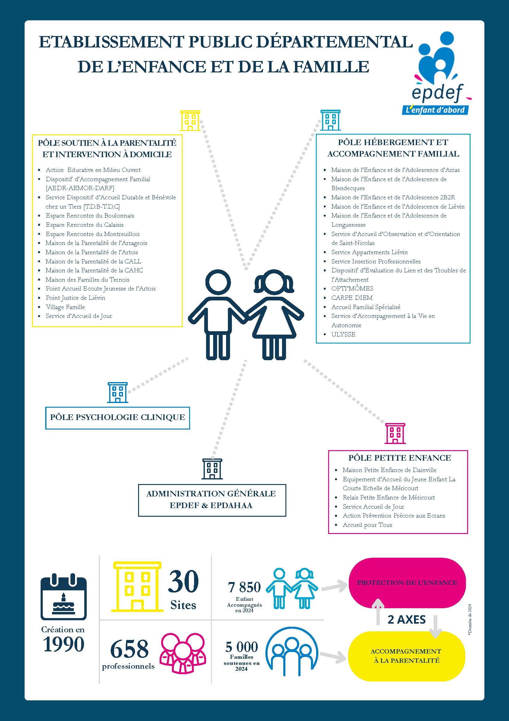 Du côté des services intervenant quand le danger pour l’enfant est constitué tout en cherchant à éviter la séparation enfants-parents, l’EPDEF se propose d’étendre la capacité autorisée de ses interventions en milieu ouvert (AEMO / DMAD-DARF).